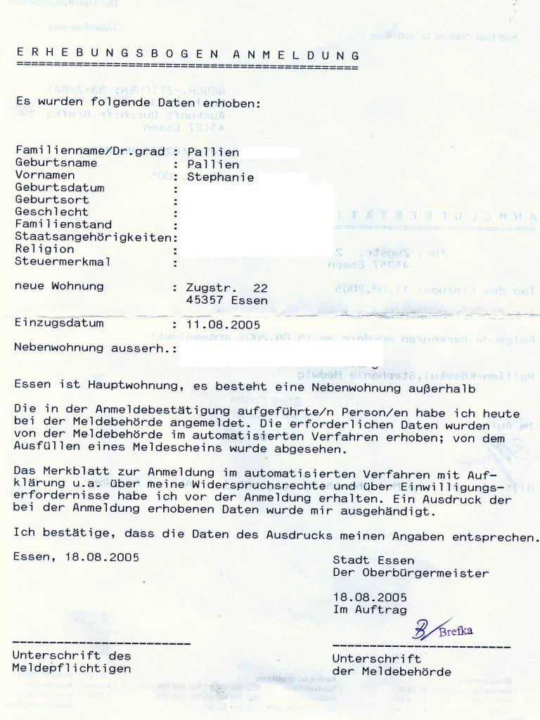 Meldebescheinigung Stadt Essen